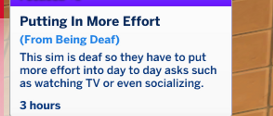 CreaterDec 13, 20181 min readSims 4 Deaf TraitDo you want a deaf sim? well i made this trait just for people like you! when they watch TV or socialize they will get a focused...